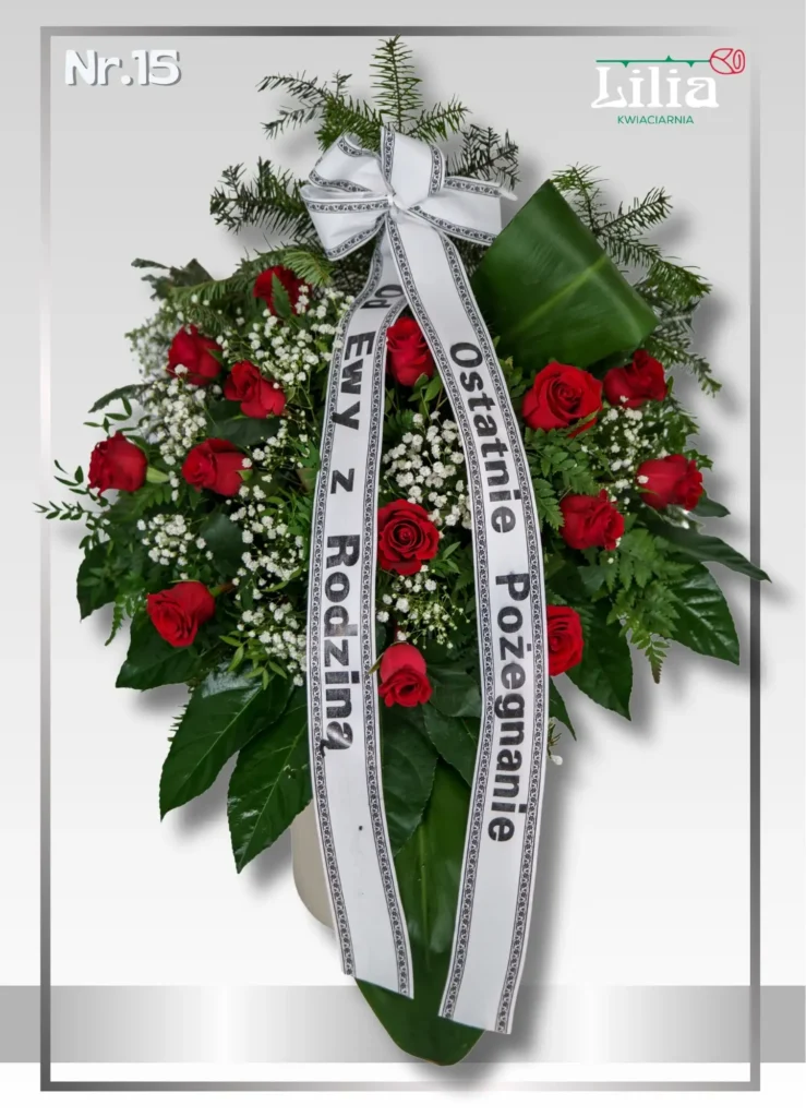 Wieniec w odcieniach pomarańczu i złota, wykonany z róż. Symbolizuje wdzięczność, dobre