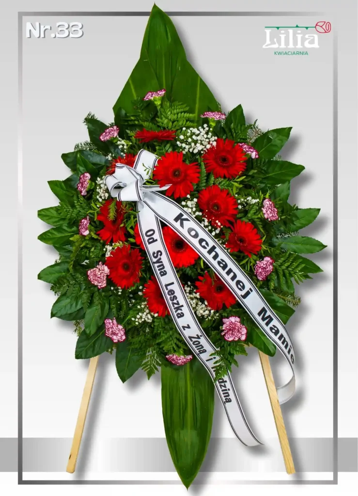 Kompozycja z czerwonych gerber z dodatkiem drobnych kwiatów i zieleni. Intensywna barwa przyciąga uwagę i podkreśla emocje. To propozycja dla osób, które chcą wyrazić pamięć w mocniejszy sposób.